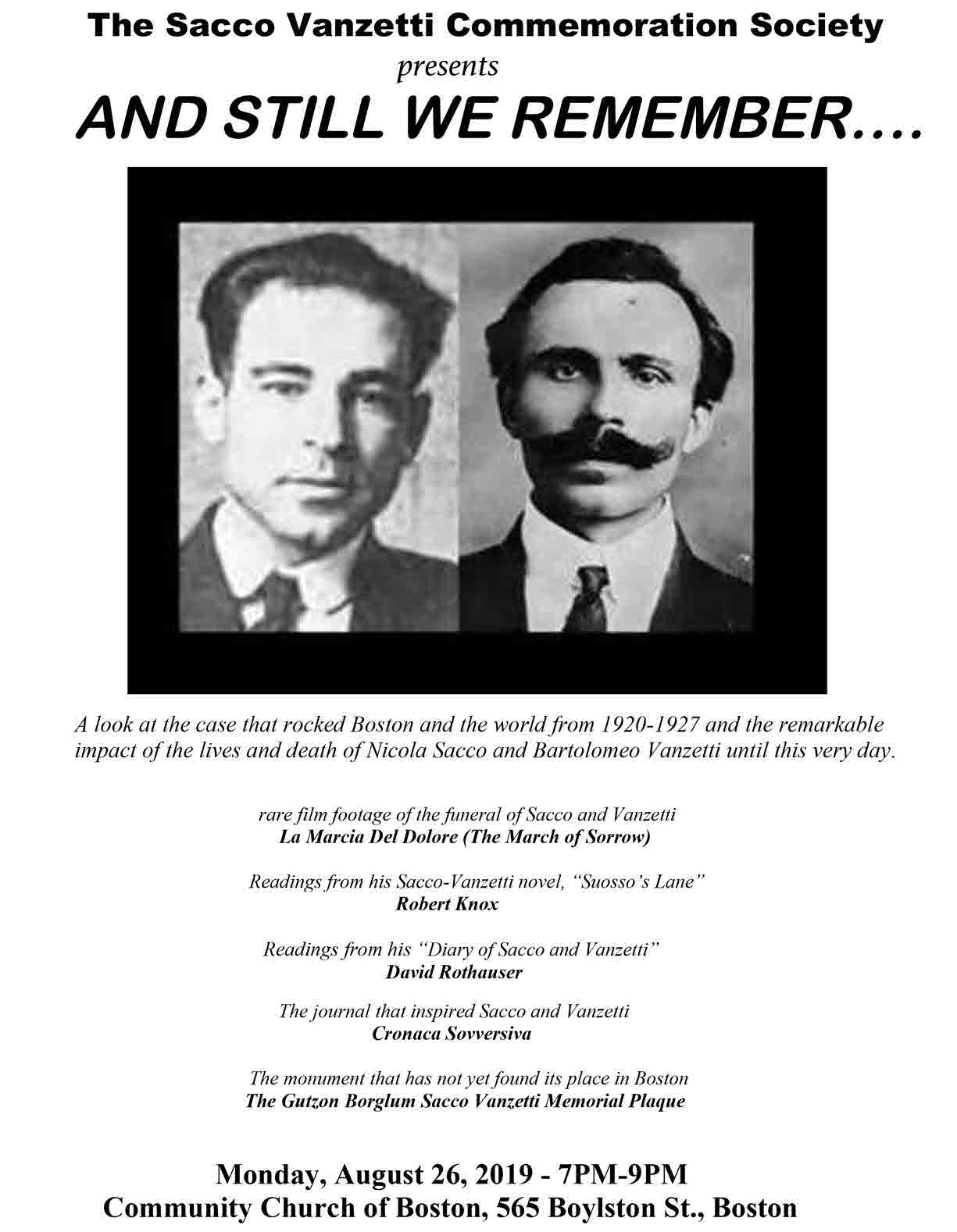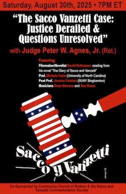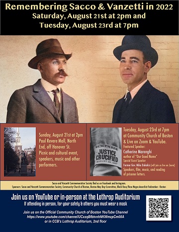 Co-sponsored by The Sacco and Vanzetti Commemoration Society and The Community Church of Boston