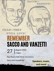 Read more Remember Sacco and Vanzetti Sunday, August 27,2023, 2-4 PM at the Paul Revere Mall, North End, Boston. We will remember the lives, struggles and death of Nicola Sacco and Bartolomeo Vanzetti, executed by the Commonwealth of Massachusetts on the electric chair at the Charlestown State Prison on August 23, 1927.