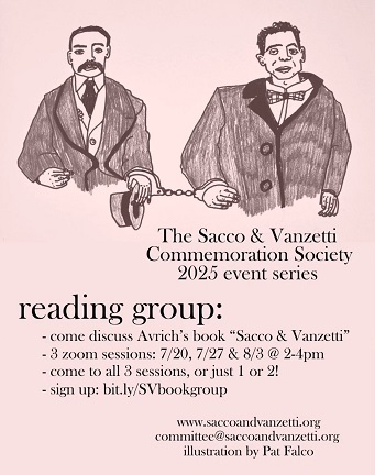 Read more Saturday 7/20, 7/27 and 8/3, 2025 - Sacco and Vanzetti Reading Group 07/25/2025 [MEETINGS] - Join us 7/20, 7/27, and 8/3 from 2-4pm to read and discuss Sacco and Vanzetti: The Anarchist Background by Paul Avrich! This event is organized by The Sacco & Vanzetti Commemoration Society. Attending all sessions and reading ahead of time is not required!