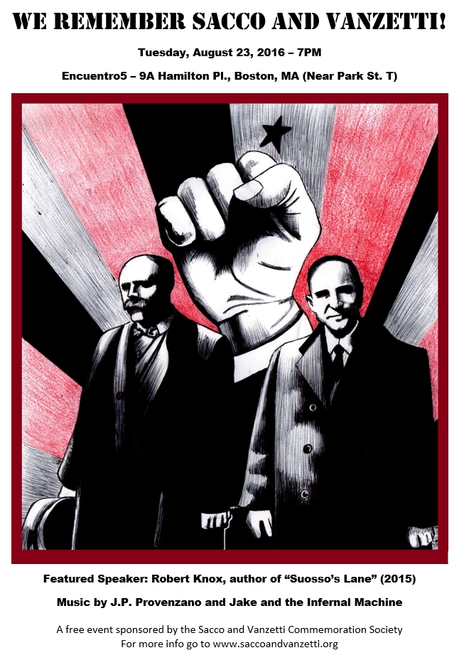 A radical commemoration of Sacco and Vanzetti at e5, Sat. August 25 Sacco and Vanzetti, a radical commemoration at encuentro5, saturday, August 25, 7pm. 9A Hamilton Place, Boston (near Park St. T station)