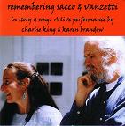 Remembering Sacco & Vanzetti in Story and Song. A Live Performance by Charlie King & Karen Brandow "A quarter century later Karen and I remember Nic & Bart as we work against capital punishment, for workers' rights, against war. This past year we have witnessed the mass arrest without due process of immigrants and dissidents, the launching of another war, the widening gulf between rich and poor, the stiffling of civil liberties and labor rights, and the clamor for executions. It seems we have not learned much in the 75 years since two good men were electrocuted for their dreams, their politics and their ethnicity. We hope that by remembering Sacco & Vanzetti we can understand and change." Charlie King and Karen Brandow, July 4, 2002.